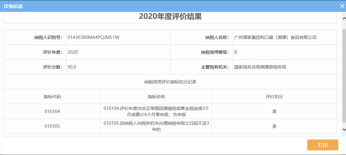 企業(yè)納稅信用等級報告: