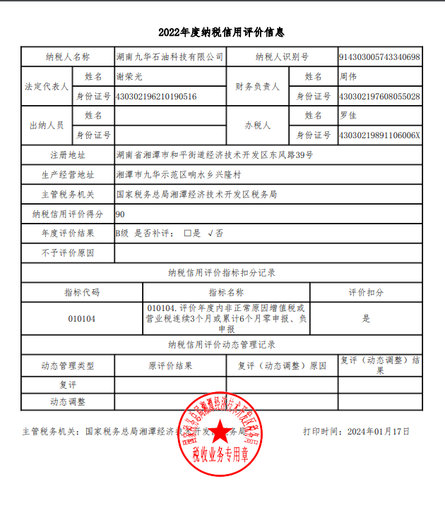 企業(yè)納稅信用等級報告: