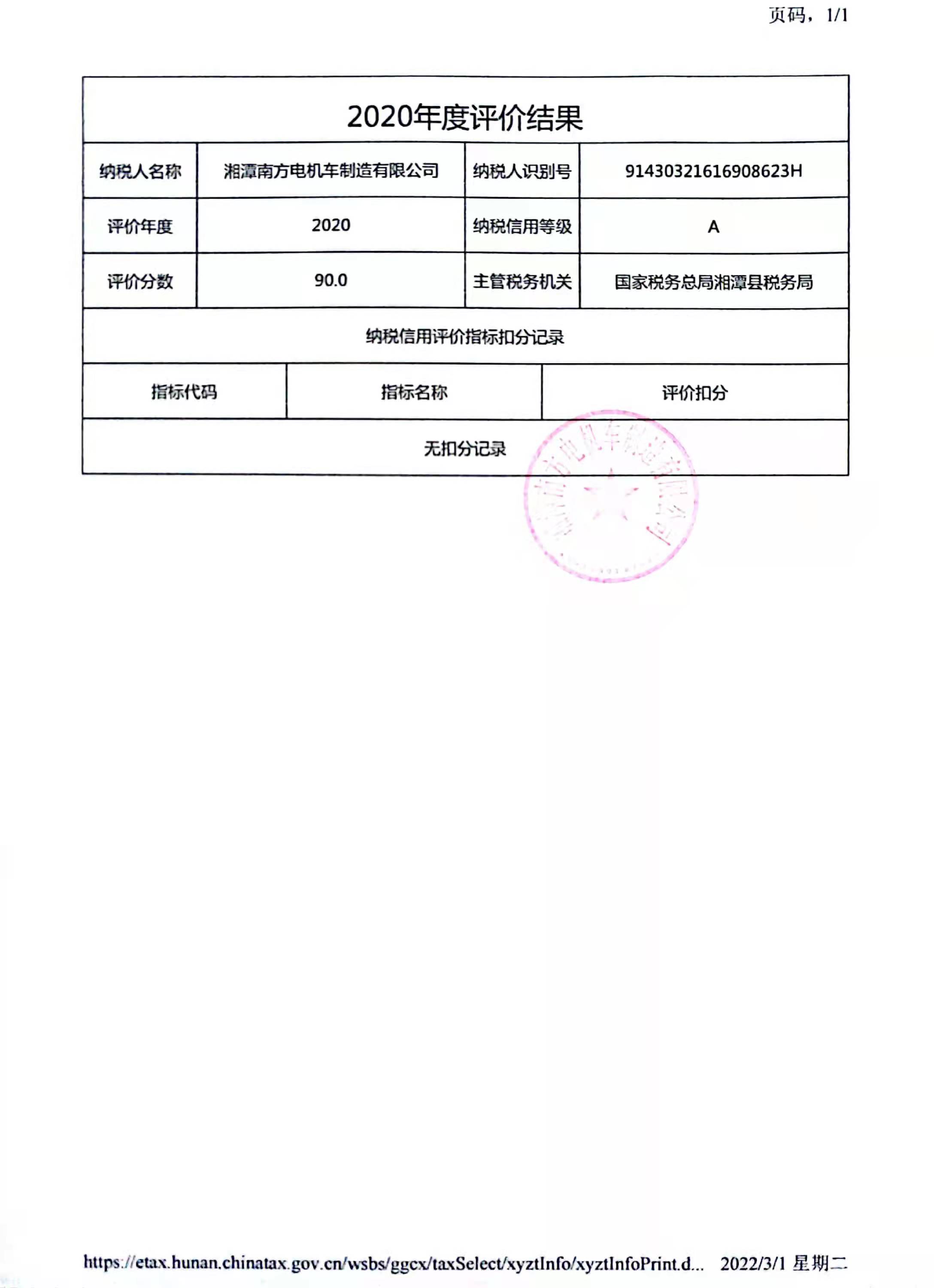 企業(yè)納稅信用等級報告: